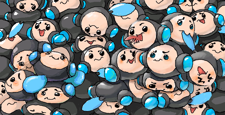たきまろ 大滝まりょ على تويتر オタマロの頭ってロックマンのメットみたいだよな と思った結果作られた オタマロの擬人化 と言うか擬ナビ化 進化後の意匠も入れました